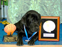 He has a barrel type body and a broad skull with a melting facial expression. He stands proud and moves very swiftly. He has won several Best of Breeds as well as several Best in Groups. He's Fifteen (15) points shy from his Hall of Fame (HOF) title.